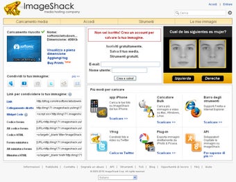 Non solo foto, comunque. Con le stesse modalità ImageShack consente anche il caricamento di video e riprese da webcam. La registrazione gratuita, non obbligatoria, consente di avere l'accesso ad un profilo personale con la possibilità di organizzare i propri album di immagini, slideshow e non ultimo la possibilità di cancellare da ImageShack gli archivi caricati.